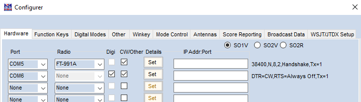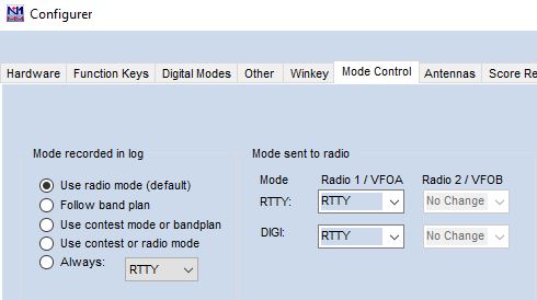 These settings will allow SSB, CW, and data modes via N1MM logger or similar programs.