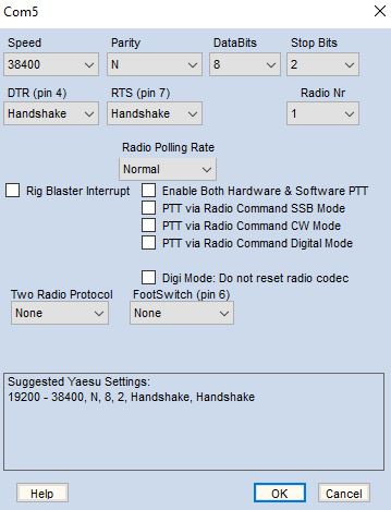 WSJT Setting: - Set CAT = COM4 38400 8 2 None, PTT = RTS / COM3 .